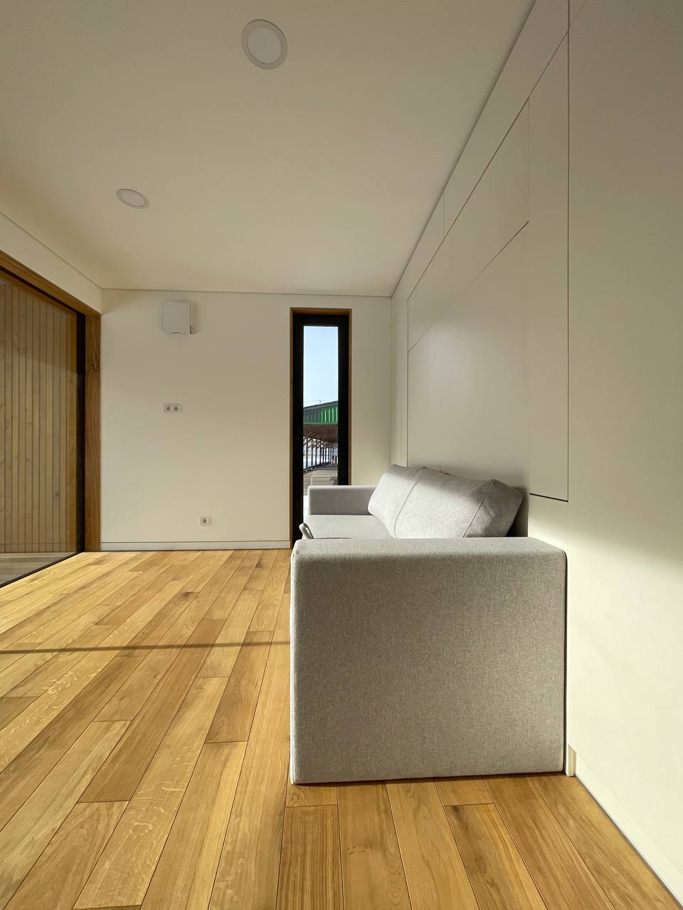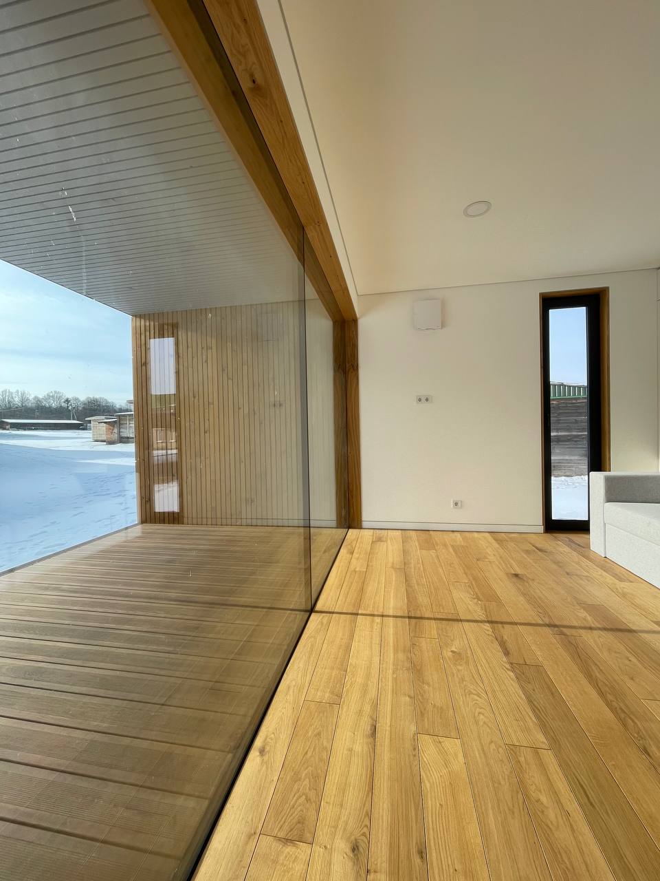 Die Wand ist in der Grundkonfiguration mit Mineralwolldämmung erhältlich und bietet einen Wärmeleitkoeffizienten von 0,177 W/m2K. Die Basis der Wand ist ein langlebiger Rahmen aus natürlichem Massivholz.